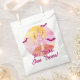 No Tricks Just Treats Spooky Castle Halloween Bag. Spooky castle on the hill and bats flying in the air. The design is in purple and orange colours.