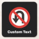 U-shaped arrow icon in red prohibited circle. Custom background colour. Custom text.