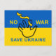 No was, save Ukraine. Image of a wounded peace pigeon in terms of support against the background of the yellow and blue flag of Ukraine.