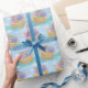 This Noah's Ark patterned wrapping paper features a pattern of Noah's ark artistically painted filled with animals with a background of blue and turquoise with puffy white clouds. Designed by world renowned artist ©Tim Coffey.