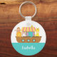 Set sail on the sea with this colourful and cute Noah's Ark design. It features a ship filled with cute baby animals like monkey, orange lion, white bunny, blue elephant, giraffe and bird. Adorable key chain design for kids with name personalisation.
