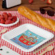 This beautiful print of a pen and watercolour illustration by Helen McCartney Designs features a group of sweet animals huddled together aboard Noah's Ark.