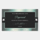 The design features a noble shimmering icy teal frame with fine decor lines, on a plain black background.