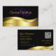 Noble Black Wavy Gold Decor Initials and QR Code Business Card