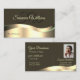 Noble Dark Brown Wavy Gold Decor Initials Photo Business Card