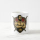 This bold, masculine mug features a striking emblem of strength and honour — a fierce lion's head on a classic shield, flanked by crossed swords and crowned with a laurel wreath. Designed in deep tones with elegant gold accents, it's the perfect everyday mug for those who value courage, nobility, and timeless style