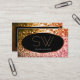 Make a lasting impression with this luxurious and elegant business card design featuring a glamourous golden orange and pink glitter effect with a noble oval decor frame on a black background.