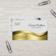 Noble Wavy Gold Decor on Light Grey Monogram Photo Business Card