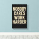 This bold, no-excuses design delivers a raw truth: success doesn’t wait for sympathy. "Nobody Cares, Work Harder" is the perfect mantra for those who grind in silence and hustle through setbacks. With a clean black background and distressed bold lettering, this piece is ideal for gym walls, office motivation, or anyone who thrives on pushing through without complaints. It’s not just a message—it’s a mindset.