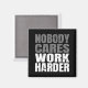 Add a touch of motivation to your fridge or workspace with our 'Nobody Cares, Work Harder' distressed text magnet. This isn't just any magnet; it's a daily reminder to stay focused and driven. The rugged, distressed text gives it a bold look, while the powerful message serves as a constant source of inspiration. Whether on your fridge or office whiteboard, let this magnet be a symbol of your dedication to working hard and achieving your goals.