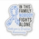 This "Nobody Fights Alone" sticker is a meaningful way to show support for Addison's Disease warriors. Featuring a light blue awareness ribbon, it brings attention to autoimmune and rare diseases. Perfect for water bottles, laptops, journals, or to gift a fighter.