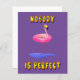 Bring humour and charm to your space with this quirky "Nobody is Perfect" design featuring a relaxed flamingo floating in a pink swimming ring. Set against a bold purple background with playful 3D-style yellow lettering, this fun and eye-catching design is perfect for flamingo lovers, summer vibes, and anyone who embraces imperfection with a smile. Ideal for gifts, home decor, and accessories!