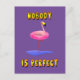 Bring humour and charm to your space with this quirky "Nobody is Perfect" design featuring a relaxed flamingo floating in a pink swimming ring. Set against a bold purple background with playful 3D-style yellow lettering, this fun and eye-catching design is perfect for flamingo lovers, summer vibes, and anyone who embraces imperfection with a smile. Ideal for gifts, home decor, and accessories!