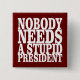 Nobody Needs a Stupid President 15 Cm Square Badge