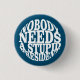 Nobody Needs a Stupid President 3 Cm Round Badge
