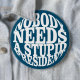 Nobody Needs a Stupid President 6 Cm Round Badge