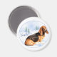 Noel. Evergreens, a snowy background, and the Basset Hound wish you a peaceful holiday season this Christmas. Our dog design makes a great gift for you or a friend.