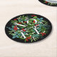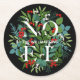 NOEL Berries Greenery Black Holiday Round Paper Coaster