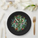 The word NOEL and your name among winter leaves and berries on a black background (or any color), these paper plates are elegant for any holiday Christmas occasion. MATCHING items in our store.