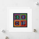Noel—French for Christmas and seasons greeting for the holiday in an artful colourful ornamental tyopgraphic design. Art of Margaret Loftin Whiting.