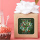 Homemade with Love personalised square stickers feature the word NOEL among elegant leaves and berries with your name and greeting in chic white lettering on dark green. MATCHING items in our collection.