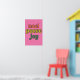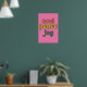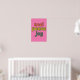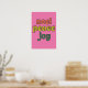 This Christmas themed poster print features the words "noel, peace and joy" in retro style lettering in orange, lime green and dark green against a bright pink background.