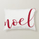 This stylish holiday pillow features the word "noel" in trendy red calligraphy, with a spot to personalise with your name. The back pattern contains white polka dots on a red background.