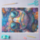 is a digital art piece that zooms in on the vibrant beauty of a sea turtle’s shell. The intricate pattern and kaleidoscope of colours—ranging from orange and blue to green and purple—create a mesmerising effect. The turtle’s eyes, oversized and reflective, add a touch of whimsy to its appearance. Set against a lively coral reef teeming with marine life, this image celebrates the splendour of the underwater world.