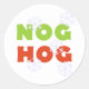 Bright red and green text with white snowflakes reads "Nog Hog" on holiday T-shirts, tote bags, sweatshirts, mousepads, buttons, and more, perfect for anyone who loves egg nog and who is looking for a fun, cute, and somewhat humourous holiday design!