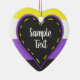 Ceramic Christmas ornament shaped like a heart with the non-binary pride flag and a heart in the centre of the design. A yellow, white, purple, and black flag of the enby pride movement; with an editable text field for your name or message; a great way to decorate your Christmas tree :D