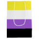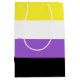 Non-binary people may identify as having two or more genders; having no gender; moving between genders or having a fluctuating gender identity; or being third gender or other-gendered, a category that includes those who do not place a name to their gender. Each stripe colour represents different types of non-binary identities: Yellow for people who identify outside of the gender binary, white for nonbinary people with multiple genders, purple for those with a mixture of both male and female genders, and black for agender individuals.