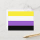 Non-binary people may identify as having two or more genders; having no gender; moving between genders or having a fluctuating gender identity; or being third gender or other-gendered, a category that includes those who do not place a name to their gender. Each stripe colour represents different types of non-binary identities: Yellow for people who identify outside of the gender binary, white for nonbinary people with multiple genders, purple for those with a mixture of both male and female genders, and black for agender individuals.