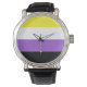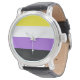 Non-binary people may identify as having two or more genders; having no gender; moving between genders or having a fluctuating gender identity; or being third gender or other-gendered, a category that includes those who do not place a name to their gender. Each stripe colour represents different types of non-binary identities: Yellow for people who identify outside of the gender binary, white for nonbinary people with multiple genders, purple for those with a mixture of both male and female genders, and black for agender individuals.