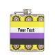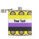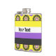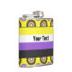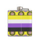 Vinyl-wrapped flask with the non-binary pride flag and a seamless modern geometric flower pattern in the colours of the pride flag; a yellow, white, purple, and black enby pride design on a yellow background with an editable text template for your name or message