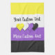Kitchen towel with the non-binary pride flag with little hearts in the centre of the design. Black, purple, white, and yellow flag of the enby pride movement; with an editable text field for your name or message