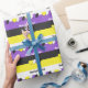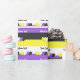Wrapping paper with the non-binary pride flag with little hearts in the centre of the design. Purple, yellow, white, and black flag of the enby pride movement; with an editable text field for your name or message