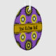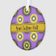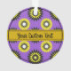 Christmas ornament with a seamless modern geometric flower pattern in the colours of the non-binary pride flag - a yellow, black, yellow, and purple enby pride design on a purple background; with an editable text field for your name or message; a great way to decorate your Christmas tree :D
