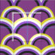 Fabric with a seamless rainbow pattern in the colours of the non-binary pride flag; a yellow, purple, black, and white enby pride design, a pattern on a purple background