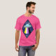 I give wanted to give this a 4 instead of a 5 because these Basic DARK T0shirts run unexpectedly SLIM or Narrow. Which is great if you do not have a potbelly, but I have a paunch. It isn't the shirt's fault that I've got a beer belly. The design and shirt itself is a quality cotton shirt. The color is more of a deep purple, but still a very pretty color. The Basic DARK T-shirts run a bit SLIMMER than the Basic Ts. The neck is a fraction narrower (or seems to be narrower) also. I'm a paunchy middle-aged woman and my neck is 12 inches (31cm) thick and the neckline fell about the same as in the photo of the man, and I had the desire to tug it a bit. So if you're a thick necked man or like loose shirts, be aware these are slimmer shirts. Once I get rid of my lockdown paunch it'll look great. The shirt washed well in cold water with no apparent bleeding. We don't have a dryer, so it hung dry. Did not shrink. Love the colors and the design. The design looks smaller on my shirt than it does on the model on-line. But still, it looks good on the shirt. The printing looks as it does on the model, just the size seems fractionally smaller. Washed garment in cold water, hung dry and design appeared unaffected.