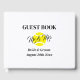 Non-traditional Mr & Mrs tennis theme wedding Guest Book. Sporty design with yellow ball icon. Personalise with names of bride and groom. Also great for engagement party or anniversary. Colours can be changed to your own favourite colours. Cute template for future Mr and Mrs. Part of budget friendly collection set with stationery and trendy decorations. Perfect for sporty couples who love playing tennis.