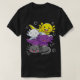 I give wanted to give this a 4 instead of a 5 because these Basic DARK T0shirts run unexpectedly SLIM or Narrow. Which is great if you do not have a potbelly, but I have a paunch. It isn't the shirt's fault that I've got a beer belly. The design and shirt itself is a quality cotton shirt. The color is more of a deep purple, but still a very pretty color. The Basic DARK T-shirts run a bit SLIMMER than the Basic Ts. The neck is a fraction narrower (or seems to be narrower) also. I'm a paunchy middle-aged woman and my neck is 12 inches (31cm) thick and the neckline fell about the same as in the photo of the man, and I had the desire to tug it a bit. So if you're a thick necked man or like loose shirts, be aware these are slimmer shirts. Once I get rid of my lockdown paunch it'll look great. The shirt washed well in cold water with no apparent bleeding. We don't have a dryer, so it hung dry. Did not shrink. Love the colors and the design. The design looks smaller on my shirt than it does on the model on-line. But still, it looks good on the shirt. The printing looks as it does on the model, just the size seems fractionally smaller. Washed garment in cold water, hung dry and design appeared unaffected.