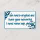Us autistic people and other neuro-atypical people need to stick together. Here's a card for emergencies.