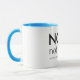 A plain white mug, black inside, with classy typography. It has black text stating "NOPE not today and tomorrow's not looking good".