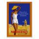 Beautiful vintage German poster advertising Norderney, an island off the North Sea coast of Germany. It shows a lovely young woman enjoying the sun on the beach. The message is " Immer wieder ein neues herrliches Erlebnis" - "Always a wonderful new experience."