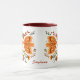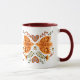 Here's a pretty Scandinavian style mug that is perfect for all seasons! The pattern includes gold and maroon Nordic style birds facing each other. The bird images are surrounded by matching hearts, flowers, and leaves. The pattern is repeated twice on the mug, with your name or other custom text in matching maroon between the images.