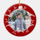 A festive wreath of birds and rose hips surrounds your own photo in this pretty Scandinavian style red and white Christmas holiday decoration.