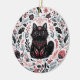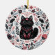 Celebrate the holiday season with this enchanting Nordic Black Kitten Ornament, featuring a whimsical folk-art design. The black kitten, adorned with intricate floral patterns, sits surrounded by delicate leaves, berries, and blooms in a striking palette of black, pink, and soft grey. This circular ornament is perfect for cat lovers and fans of Scandinavian-inspired art. Add a touch of charm and elegance to your Christmas tree or gift it to someone special this holiday season. A unique keepsake that radiates warmth, cosiness, and festive spirit!