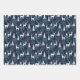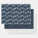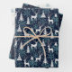 Set of three beautifully illustrated festive Nordic woodland gift wrap sheets perfect for wrapping your winter holiday and Christmas presents. These whimsical patterns feature Christmas trees, snowflakes, golden stars, and deer in dark blue, teal and white colours. Original artwork by Marketa Stengl.