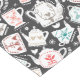 Stylish table runner features a variety of tableware including teapots, cups and more in Nordic / Scandinavian folk art style on charcoal grey background.