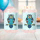 A cute owl in brown and blue, done in Nordic folk art style, superimposed on a snowy background image. Customise by adding your own text on the reverse side. You may change the font as well as the text colour.
